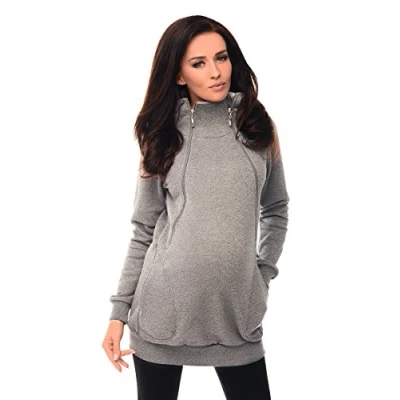 Purpless Maternity 2in1 Pregnant Breastfeeding Women Sweatshirt Hooded Top with Pockets B9052 (18, Gray Melange)