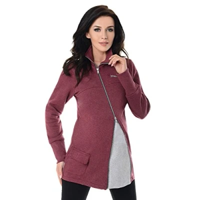 Purpless Maternity Hoodie Across Body Adjustable Zip Cowl Neck Pullover Woman 9055 (12, Burgundy Melange)