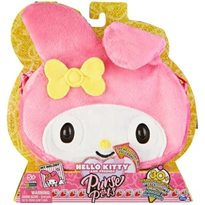 The My Melody bag made of cuddly soft plush is not only beautiful for stroking. She responds to it with blinking eyes and more than 30 cute sounds and reactions. If you hold your forehead, it even charges itself with a wish Want music for a city stroll? Simply press on My Melody's nose and hold her forehead and the beats from the world of Hello Kitty and Friends begin. Also on yes/no questions, e.g. for an outfit, it responds with appropriate sounds and becomes a real style consultant My Melody is equipped with a cute printed adjustable shoulder strap that has a length of 107 cm to a height of approx. 1.70 m. The inside of the bag offers space for everything that is essential for a city stroll. Wallet, mobile phone, keys etc. Fits comfortably inside With its fleece hood and yellow bow, My Melody looks particularly cute and delights all Sanrio fans. Hello Kitty and Chococat are also available separately as vibrant Purse Pets bags Contents: 1 My Melody bag (W 19 x D 6 x H 15 cm), includes 3 AAA batteries, 1 instruction manual (English language not guaranteed) The My Melody Purse Pets bag is the ideal gift for all Sanrio and Kawaii fans aged 5 and up and also inspires other fashion-conscious rabbit friends, Manufacturer: Spin Master