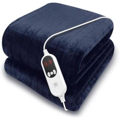 Purus Navy XL Heated Throw Electric Blanket, 180 x 130cm Blanket Machine Washable Soft Micro Fleece Overblanket with 12HR Timer and 9x Control Heat Settings