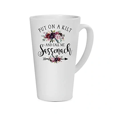 Put On A Kilt and Call Me Sassenach Outlander Gifts,Highlander Gifts Birthday Coffee Tea Mug Unique Latte Ceramic Mug. (17oz)