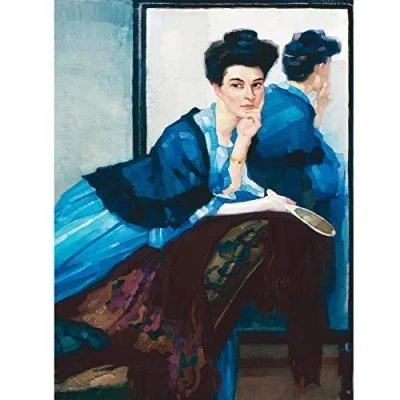 Putz Woman in Blue Dress Painting ungerahmt Wandbild Kunstdruck Poster Home Decor Premium