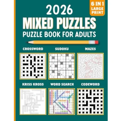 Puzzle Book For Adults: Mixed Word Search, Crossword, Codeword, Kriss Kross, Sudoku And Mazes Activity Adults With Full Solutions to ... Exercises Increase Cognitive Abilities