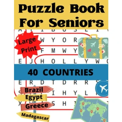 Puzzle book for Seniors : Large Print 40 Countries: word Seek adults and Search Pages Size 8.5 x 11 inches puzzles