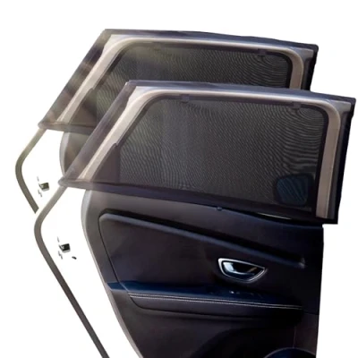These elastic textile curtains have been designed to offer complete side protection against the sun's rays and heat, keeping the interior of the vehicle cooler and more comfortable. Their fabric acts as an effective barrier that filters direct solar radiation, protecting both the occupants and the materials in the passenger compartment from deterioration due to prolonged exposure. Made from high-quality 100% polyester, they are elastic, lightweight and hard-wearing. This textile structure completely covers the outer frame of the rear window, easily adapting to different door shapes and sizes. As well as providing shade, they act as a physical barrier against insects, dust and dirt from outside. They are extremely easy to install: just open the rear door and slide the curtain over it until it completely covers the window. Once in place, simply close the door to secure it. No suction cups or adhesives are required, making it a practical solution with no waste or risk of damage to the car windows or frames. One of its biggest advantages is that it allows you to lower the window without losing sun protection or ventilation. This is ideal in summer, as you can enjoy fresh air without the discomfort of direct sunlight or insects entering. Perfect for those travelling with children or pets and looking for comfort and safety in the back seats. The foldable textile design allows them to be stored away when not in use, taking up hardly any space. They are compatible with most cars and SUVs, and their elasticity guarantees a universal fit. For safe use, it is recommended that they be installed under adult supervision, avoiding abrupt deployment near the face.