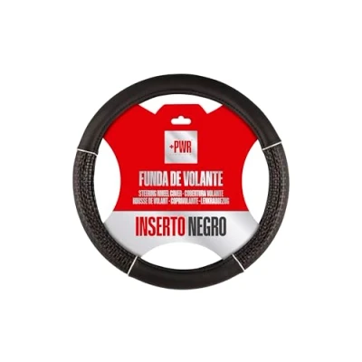 +PWR Car Parts Black Insert Steering Wheel Cover Universal for 37 to 39 cm Wheels. Non slip. Made PVC.