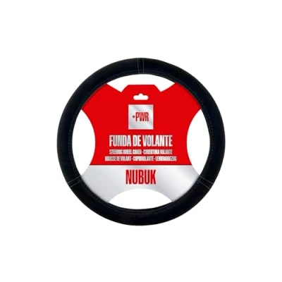 Universal design with a perfect fit for steering wheels from 37 to 39 cm. This cover has been designed to fit most passenger car steering wheels, ensuring a firm, slip-free fit. Quick and easy to install, providing a safer and more comfortable driving experience from the start. Made from 100% high-quality polyester for maximum durability. Its resistant material protects the steering wheel against wear and tear, scratches and dirt, keeping it in perfect condition for longer. In addition, its soft and breathable texture guarantees a pleasant feel to the touch at any time of the year. Non-slip surface for a firm and secure grip. The +PWR Car Parts Nubuk model steering wheel cover offers greater control while driving thanks to its high-grip coating. Its ergonomic design improves grip and reduces hand fatigue on long journeys, providing a more stable and comfortable ride. Easy to install and clean with a simple damp cloth. Its flexible structure allows it to be fitted in a matter of minutes without the need for tools. In addition, it is very easy to maintain, as simply wiping with a damp cloth is enough to remove dirt or stains, ensuring that the steering wheel always looks impeccable. Elegant style in black with a premium finish. Its sober and sophisticated design brings a touch of luxury to the interior of the car, combining perfectly with any style. Ideal for those looking to improve the appearance of the vehicle without sacrificing functionality, this steering wheel cover is the perfect option to give it a renewed and exclusive look.