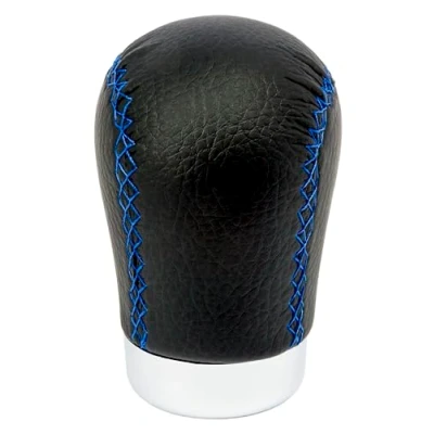 +PWR Car Parts Universal Gear Shift Knob Short Class Model Black Leatherette with Blue Stitching. 30 mm Trigger. Elegant and Sporty Design.