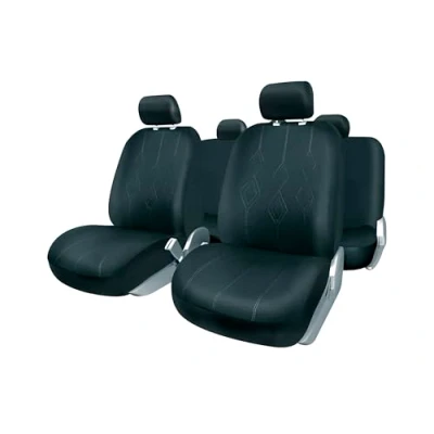 The complete set of Venezia seat covers from +PWR Car Parts is designed to protect and renew the interior of your vehicle with an elegant and functional finish. This set, in a sober and modern black colour, is compatible with side airbags and is German KBA/TÜV certified, guaranteeing maximum safety and performance without compromising airbag deployment. Made of 100% high-quality polyester, these covers are resistant to daily use and meet the highest standards of durability. The material is breathable, comfortable and easy to maintain, ideal for protecting seats from stains, dust and prolonged wear, thus preserving the value and original appearance of the vehicle. In addition, their universal design makes them suitable for most cars on the market, ensuring a reliable and versatile fit. The set includes 11 complete pieces to provide total coverage: 2 front backrests, 2 front seats, 1 rear backrest, 1 rear seat and 5 headrest covers. Thanks to their split rear zip, the covers are easy to install and allow for a perfect fit, even in split or folding rear seats, offering practicality and functionality in any configuration. They are quick and easy to install, making them easy to handle and fit without the need for additional tools. Once in place, these covers provide a firm hold, preventing wrinkles and slipping during use, which significantly improves the comfort and aesthetics of the car interior. In addition, they are 100% washable and very easy to clean with a simple damp cloth, ensuring effortless maintenance. With the Venezia seat cover set, your vehicle gets a renewed and protected look, combining style, functionality and safety in a single solution. These covers are ideal for keeping your seats looking like new, protecting the interior and adding an elegant, durable and practical touch to any car.