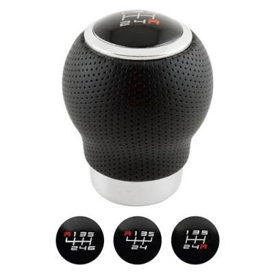 +PWR Car Parts Universal Short OEM Style Gear Shift Knob, Black Micro Perforated Leatherette. 27mm Lever. With Interchangeable Patterns.