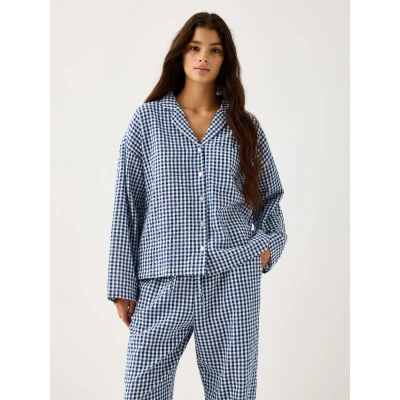 Lindex Pyjama shirt in seersucker with long sleeves and buttons down the front.