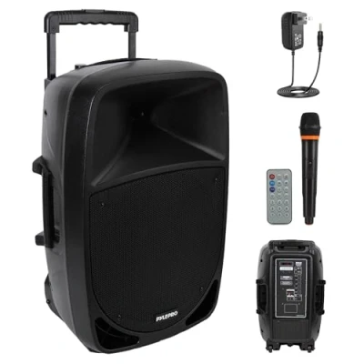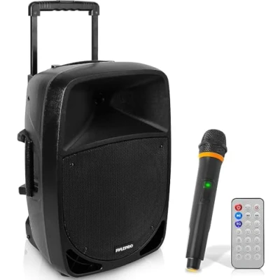 1200 Watts Power Supply: This compact and high-powered 1200-watt Karaoke PA sound system by Pyle is equipped with a 30cm subwoofer and 7.6cm treble speaker for full-range stereo sound reproduction, perfect for a patio party or crowd control. Wireless Audio Streaming: This indoor/outdoor speaker system has a built-in Bluetooth with a wireless range of up to 10 metres, allowing you to play your favourite songs from devices like iPhone, Android smartphones, iPads, tablets, and more. Audio Configuration and Recording: This speaker and microphone set can record audio as streamed through the speaker or via the included external microphone, ideal for rehearsing or singing practice. It also features echo, bass, and treble controls for DJ-quality sound. Supports USB/SD Card: The device is equipped with a USB flash drive memory reader, SD card reader, and 3.5mm AUX input cable for connecting external devices. It is compatible with MP3 digital audio file playback. Bluetooth Version: 4.2. Rechargeable Battery: This box-type, battery-powered heavy-duty portable PA loudspeaker has a built-in rechargeable battery, making it convenient and portable. It also includes a 3.5mm stand mount for easy mounting. Ideal for both personal and commercial use.