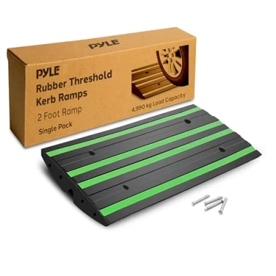 RUGGED AND HEAVY DUTY DESIGN: Constructed from wear-resistant non-slip rubber this 61cm threshold ramp is made for driveways curbs and pavements supporting smooth vehicle passage including cars and trailers EASY INSTALLATION AND EXPANSION: Comes with expansion screws for fixed mounting and cut-out holes for adjustment allows multiple ramps to connect adapting to larger bathroom counter decor setups or garage entries PRACTICAL PASSAGE FOR LOW VEHICLES: Supports smooth transitions for low-clearance vehicles over small steps or uneven surfaces also useful as a shed ramp or to create step-free access along outdoor wall outlet shelf areas STURDY AND LONG-LASTING BUILD: Made from marine-grade waterproof rubber with green reflective strips for visibility maintains strength even under heavy loads across weather conditions and repeated use TECHNICAL SPECS AND CAPACITY: Measures approximately 61 x 41 x 6.6 cm and supports up to 4990 kg suitable for various vehicle types and functional as portable ramps for steps or home hacks where elevation is needed