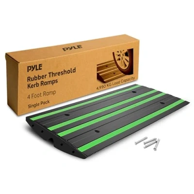 Pyle 4 ft. Single Pack Rubber Threshold Curved Curb Side Ramp with Green Reflective Lighting Strip and Expansion Screws, Synthetic, 1