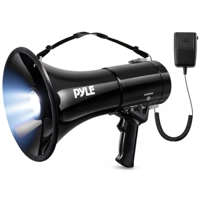 Pyle 50W Megaphone Speaker with Microphone, Loud Bullhorn Megaphones Siren & Adjustable Volume, Hailer Mega Phone, IndoorOutdoor Use, Rechargeable, Perfect for Police, Football, Kids More