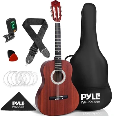 Pyle 6 Acoustic Guitar 36 Inch Junior Set, ¾ Size Nylon String Wood Classic Guitarra Acustica for Beginner Youth, Kids, Boys, Girls, Teen, Adult with Accessories Pack, Right, Sapele (PGACLSPI20)