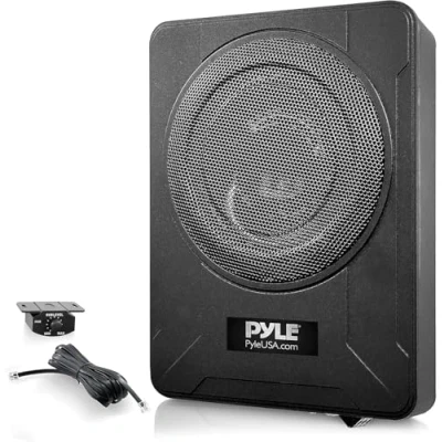 600W Power: Pyle’s 20.3 cm Amplified Low Profile Subwoofer offers a maximum power of 600 watts. It produces great low-frequency bass, enhancing your car's audio system and the party vibe. Built-in Amplifier: The integrated amp features low pass crossovers and a control for adjusting input sensitivity from 0.12V to 3.5V. Includes a variable bass boost and remote level control for adjusting subwoofer levels. Low Profile: With a height of just 7.6 cm, it fits easily under most vehicle seats. Dimensions: 32.5 x 24.1 x 7.6 cm. Mounting hardware included, making it a perfect addition to your car stereo system. High-Level Input: Use speaker line inputs (high-level inputs) when your head unit lacks RCA outputs. Connect properly with the supplied cable as shown in the manual for optimal audio source connection. Low-Level Input: Recommended for introducing the audio signal, line-level inputs (RCA) are ideal if your head unit or other source has RCA outputs, ensuring the best sound performance for the hideaway subwoofer.