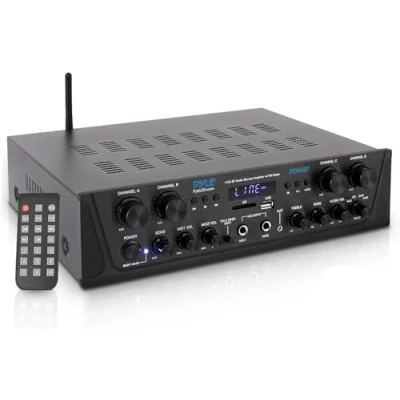 POWERFUL 500W OUTPUT: Supports 4–8 Ohm speakers; enjoy crisp stereo sound from this compact bluetooth amplifier with powerful Hi-Fi output; ideal for home listening, multi-room setups, or small venues WIRELESS BLUETOOTH STREAMING: Connect your smartphone, tablet or laptop to this hifi amplifier for seamless bluetooth audio; ideal for turntable setups or stereo listening with reliable connection MULTIPLE INPUT OPTIONS: AUX, USB, RCA and FM radio inputs let you connect your turntable, SD player or mic; this stereo amplifier offers flexible use across classic and modern audio sources MIC INPUT WITH TALK-OVER: Dual microphone input with echo effect and talk-over button make this amplifier perfect for announcements, karaoke, paging, and compact PA systems CUSTOM EQ SOUND CONTROL: Adjust bass, treble and volume with precision; this mini amplifier includes front panel knobs and remote for EQ tuning, making it ideal for tabletop home stereo systems