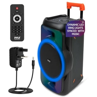 Pyle Bluetooth PA System 160W Portable Party Speaker with Rechargeable Battery, Mic Inputs & LED Lights, Powerful Bass Clear Treble for Karaoke, Events, Fitness, Classes, Outdoor Gatherings