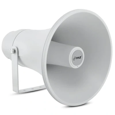 Pyle PA System Horn Speaker 24cm Weatherproof Loudspeaker Megaphone, Wall Mount Outdoor/Indoor Audio for Announcements, Intercom, Sirens & Security Alerts White