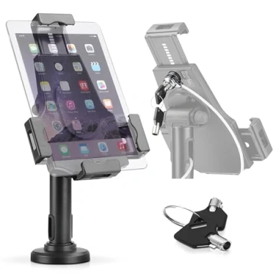 Pyle PSPADLK8 Universal Tamper Proof Anti Theft iPad Tablet Kiosk Stand Holder for Public Display with Cable Management, Fits Virtually All 8 10 Inch Tablets, Swivel,Black