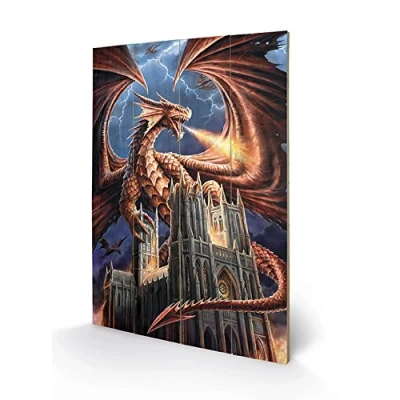 Pyramid International Anne Stokes Dragon's Fury Wood Print 40 x 59cm, Multi Colour, 59 1.3 cm