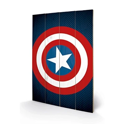 Pyramid International Avengers Assemble Captain America Shield Wood Print 40 x 59cm, Multi Colour, 59 1.3 cm