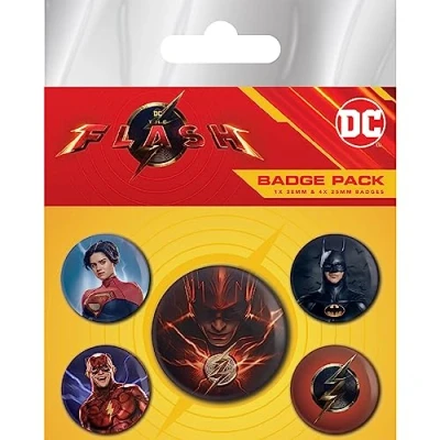 DESIGNED AND PRINTED IN THE UK - set of 4 x 25mm and 1 x 38mm pin badges depicting much loved superhero characters 1 x LARGE FLASH PIN BADGE - the speedy Barry Allen is shown all decked out in his iconic superhero costume 4 x SMALLER FLASH PIN BADGES - featuring Supergirl, Batman, The Flash and his iconic lightning bolt emblem GREAT FLASH GIFT FOR THE FLASH MOVIE FANS - anyone who enjoys the crime-fighting missions of the hero with superhuman speed will enjoy this badge pack GENUINE THE FLASH MERCHANDISE - inspired by the blockbuster movie starring The Flash, Batman and Supergirl and officially approved and licenced by DC Comics and Warner Bros for a real piece of the superhero world