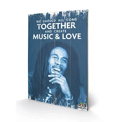 Pyramid International Bob Marley Music & Love Wood Print 40 x 59cm, Multi Colour, 59 1.3 cm