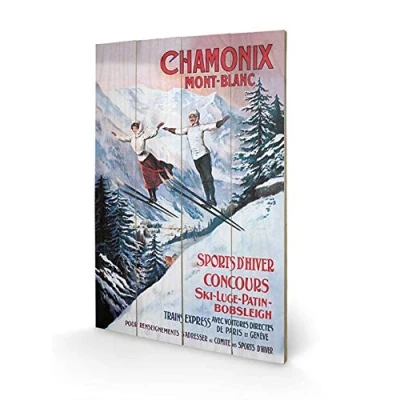 Pyramid International Chamonix Mont Blanc Wood Print 40 x 59cm, Multi Colour, 59 1.3 cm