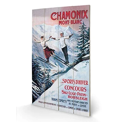 Pyramid International Chamonix Mont Blanc Wood Print, Multi Colour, 45 x 76 1.3 cm
