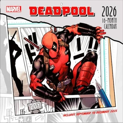 💥 Maximum Effort Laughs – Packed with Deadpool’s trademark humour, chaotic energy, and explosive antics, this 2026 calendar delivers wall-to-wall sass from Marvel’s most unpredictable anti-hero. 📆 Functional Meets Funny – A practical month-to-view grid provides ample space for notes, plans, birthdays, and reminders, all surrounded by Deadpool’s outrageous humour and comic flair. 🔴 Bold Artwork – Showcases dynamic illustrations and classic comic-inspired scenes, capturing Deadpool’s wild personality and over-the-top style in vivid colour and detail. 🎁 Marvel Gift for Rebels – A collectible calendar that makes a witty and unique gift for Deadpool fans, Marvel enthusiasts, and anyone who enjoys humour mixed with superhero mayhem. 📚 Official Marvel Calendar – Produced under licence, this 2026 planner combines authentic Marvel branding with Deadpool’s larger-than-life attitude, bringing comedy and chaos to your wall all year.