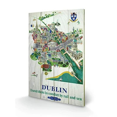 Pyramid International Dublin 1 Wood Print, Multi Colour, 40 x 59 cm