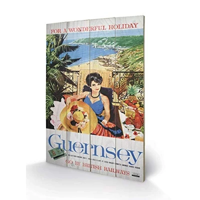 Pyramid International Guernsey Wonderful Holiday Wood Print, Multi Colour, 40 x 59 cm