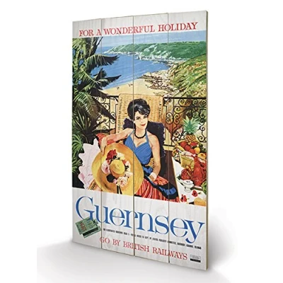 Pyramid International Guernsey Wonderful Holiday Wood Print, Multi Colour, 45 x 76 1.3 cm