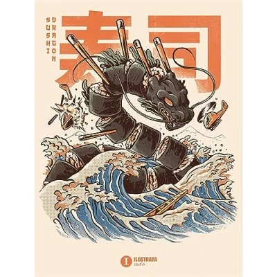 ORIGINAL WALL ART READY TO HANG - printed and hand finished in the UK, this Ilustrata canvas board for your living room, bedroom or hallway to add some quirkiness to your home SHOWING RETRO SUSHI DRAGON DESIGN - parodying a Kaiju film poster, Ilustrata's Great Sushi Dragon rises up out of the waves like a tormented sea serpent - too gruesome to tame - too tasty to slay HANG IN YOUR LIVING ROOM OR HOME OFFICE – this Japanese-inspired artwork is perfect to hang with other Ilustrata prints and wall pictures or by itself to bring even the plainest wall to life GREAT GIFT FOR ILUSTRATA FANS OF ALL AGES - anyone who loves the wacky, retro illustrations of Bruno Rodrigues, David Faraum and Victor Kahn will enjoy this imaginative canvas GENUINE ILUSTRATA MERCHANDISE - based on an original Ilustrata artwork and approved under licence from the world famous Brazilian design studio
