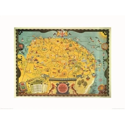 Pyramid International Norfolk Map Art Print 60 x 80cm, Paper, Multicoloured, 80 1.3 cm