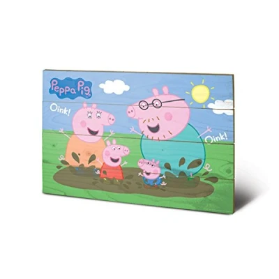 Pyramid International Peppa (Pig Family Muddy Puddle) Wood Print 40 x 59cm, Multi Colour, 59 1.3 cm