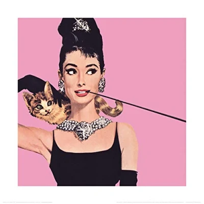 Pyramid International Pink Audrey Hepburn Art Print, Paper, Multi Colour, 40 x 1.3 cm