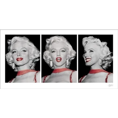 Pyramid International "Red Dress Triptych Marilyn Monroe Art Print, Multi Colour, 50 x 100 1.3 cm