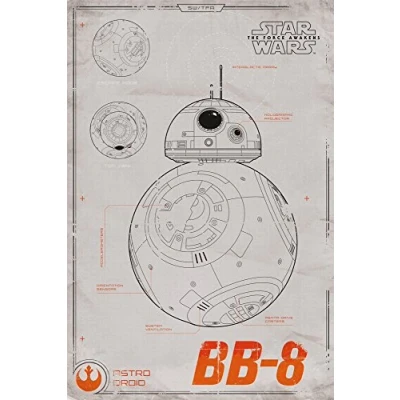 Pyramid International Star Wars Episode VII, BB 8 Plans Maxi Poster, Wood, Multi Colour, 61 x 91.5 cm