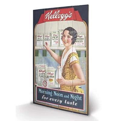 Pyramid International Vintage Kelloggs Morning Noon and Night Wood Print, Multi Colour, 45 x 76 1.3 cm