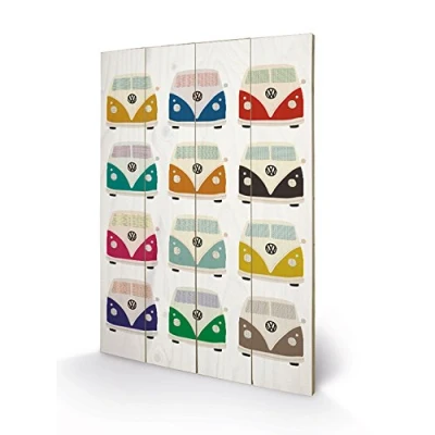 Pyramid International VW (Campers Pop Art) Wood Print 40 x 59cm, Multi Colour, 59 1.3 cm