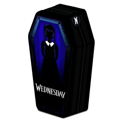 The Wednesday Coffin Shaped Pencil Case is an officially licensed, gothic-inspired accessory with a coffin-shaped design, zippered closure, and spacious interior—perfect for organizing stationery in style. Made from durable fabric, it's ideal for fans of Wednesday Addams who appreciate both flair and function.