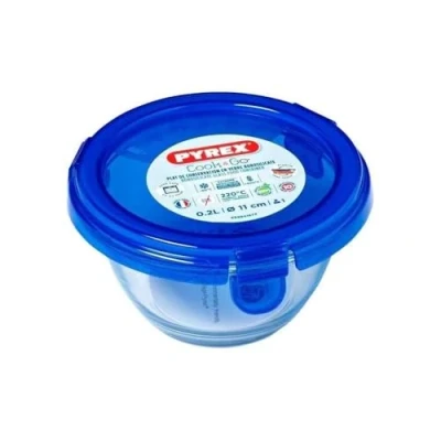 Pyrex 3426470279284 Cook & Go Round Glass Box with Lid 0.2 L/Diameter 11 cm Bake in The Oven, Store and Carry, Transparent