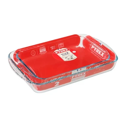 Pyrex Classic 2 Piece Rectangular Glass Baking Roasting Bake Roaster Dish Set
