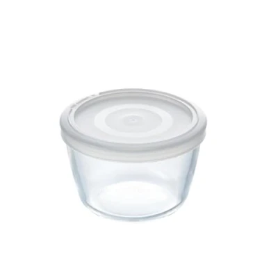 Round clear glass dishes with lids from Pyrex's Cook & Freeze Range. Move from the oven to freezer or freezer to over, safely with these Cook & Freeze dishes. Prepare meals for a busy week or freeze leftovers; this round glass dish fit with an ergonomic lid to keep food preserved while it is waiting to cooked or frozen! PLEASE NOTE YOU WILL RECEIVE 1 BOWL of your chosen SIZE. This Pyrex Cook & Freeze Round Dish comes in 3 different capacity dishes with lids – 0.6 LITRE, 1.1 LITRES & 1.6 LITRES. Dimensions of each individual dish are – 0.6 LITRE (Diameter: 12cm/Height: 8.5cm), 1.1 LITRES(Diameter: 15cm/Height: 9.5cm) and 1.6 LITRES (Diameter: 17cm/Height: 11cm). This Pyrex Cook & Freeze Round Dish is Microwave, Oven, Fridge, Freezer & Dishwasher Safe. VERSATILE FOOD COOK & FREEZE SOLUTION – These Pyrex Cook & Freeze dish are designed to let you cook and freeze all in one. No matter if you want to cook fresh/frozen food in the oven, pre-heat in the oven, serve up straight out the oven or there's leftover which need storing/freezing; these dish will be versatile to use in many ways. You can use these dish to make pasta bake, roasted vegetable & much more. ULTRA RESISTANT BOROSILICATE GLASS – Heavy and thick quality dish made from Borosilicate Glass with a smooth long lasting polished finish to be extremely resistant to many forms of damage i.e. scratches. These Pyrex dish can be used in extreme temperatures varying from -40 °C to +300 °C. They are also Thermal Shock Resistant upto 220 °C, hence they can go directly from the freezer at a temperature of - 20 °C and into the oven at a temperature of 200 °C. OPTIMUM UTILIZATION OF SPACE - With dishes ranging in 3 different capacities in convienent round shape, you will be able to neatly place it in the cupboard or in the fridge/freezer.