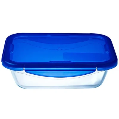 This large rectangular Pyrex Cook & Go dish is made from shock resistant borosilicate glass and includes a plastic lid that closes securely for an airtight and leak proof seal.The perfect solution for preparing meals ahead of time, the borosilicate glass container without the lid is oven proof up to 300°C.This glass container and lid can also go into the fridge or freezer to temperatures as low as -40°C, perfect for storing prepared meals.The lid and glass container are suitable for using in the microwave and also can be washed in the dishwasher.Complete with a 10 year guarantee this Pyrex Cook & Go dish is perfect for everyday use.