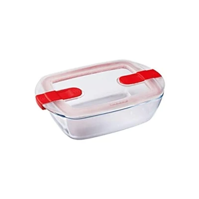 EurofficePlastic & Glass. Clear. Material Plastic & Glass. Steam vents enable food to be cooked and reheated in the microwave. Lockable lid protects food by creating air-tight seal. Integrated handles for easy movement and storage. Lockable lid.