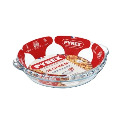 This Pyrex Classic Cake Dish with Handles adds a touch of vintage charm to your kitchen and combines it's timeless elegance with excellent durability.The practical side handles are easy to lift and the glass allows the progress of the bake to be viewed easily.Made from BPA free borosilicate glass this cake dish is designed to withstand thermal shock, transitioning from the fridge or freezer to the oven or microwave, from -40°C to 240°C without damage.Perfect for creating homemade pies to enjoy at a later date from the freezer and resistant to scratches, stains and odours for healthy cooking.Dishwasher safe for easy and convenient cleaning.Capacity: 1.3 Litres. Dimensions: 5(H) x 23(W) x 26(L)cm. Weight: 0.68 kg.